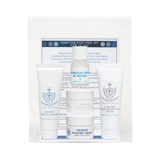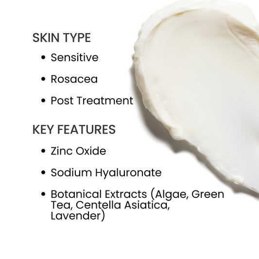 Gentle, soothing routine for sensitive skin, targeting hydration, inflammation, and redness reduction.