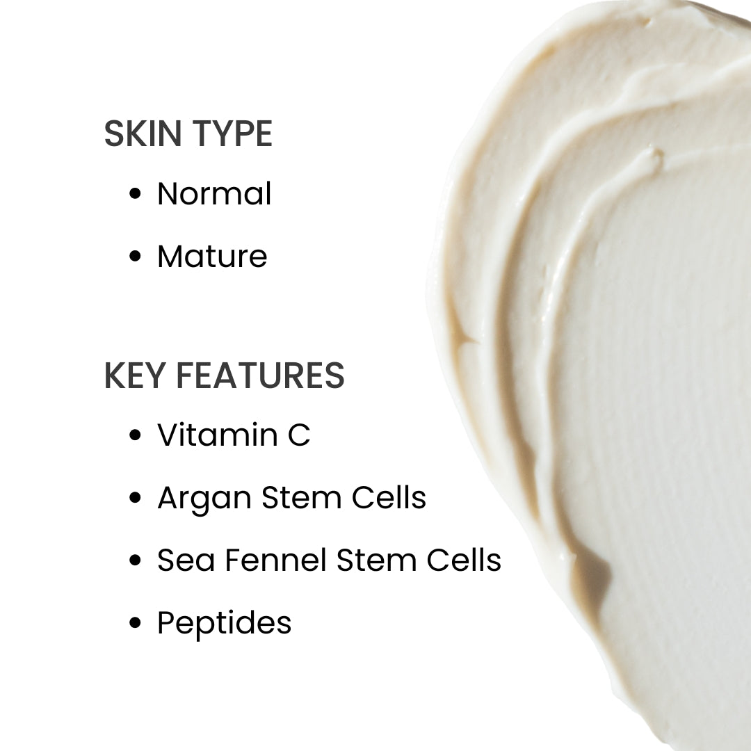 A concentrated and luxurious "leave on" mask that combines a blend of Vitamin C (tetrahexyldecyl ascorbate), plant and fruit stem cells, and Aldenine, a unique peptide that acts as a cellular detoxifier and collagen III booster. Together, these active ingredients form a potent concentration of anti-wrinkle and skin lightening benefits for mature skin.